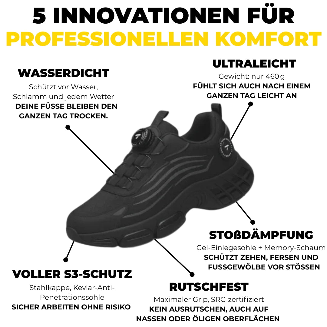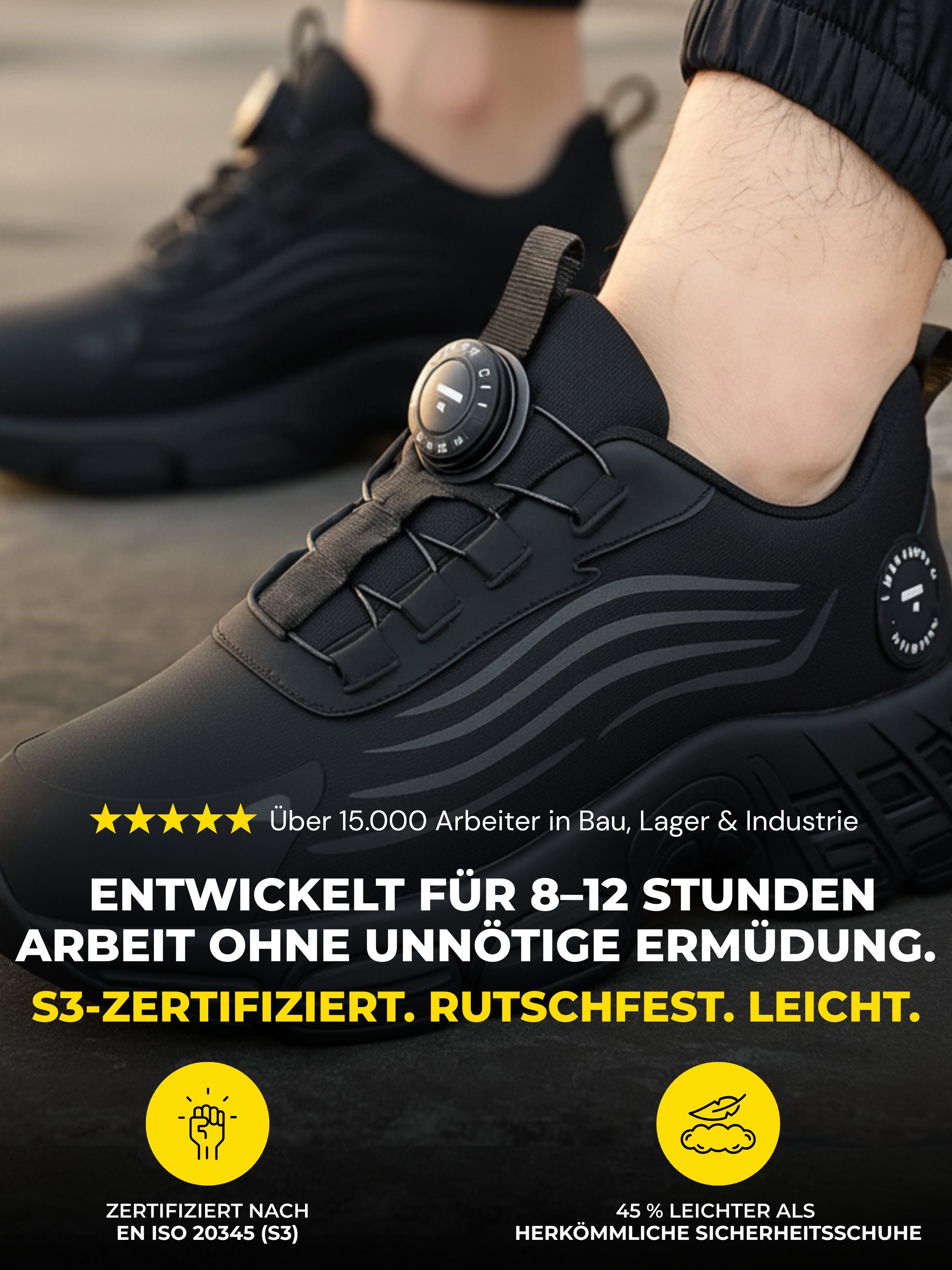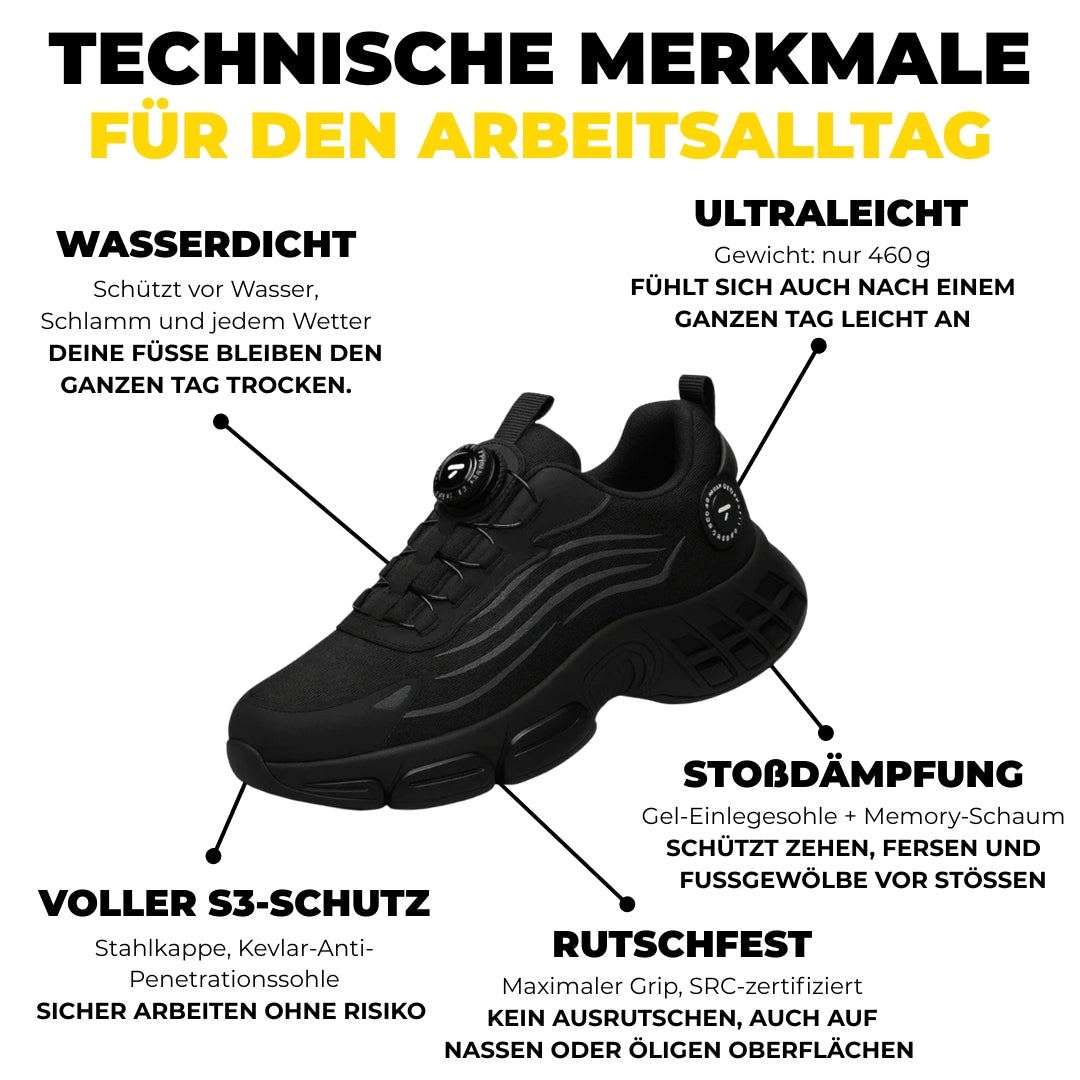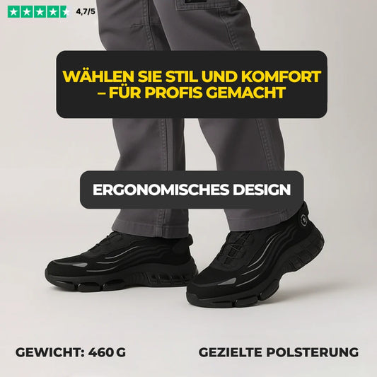Anstelle schwerer, starrer Sicherheitsschuhe erhältst du ein stylisches Paar, das du auch außerhalb der Baustelle bequem tragen kannst.