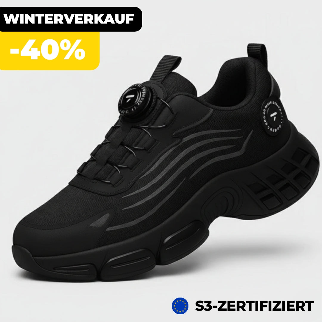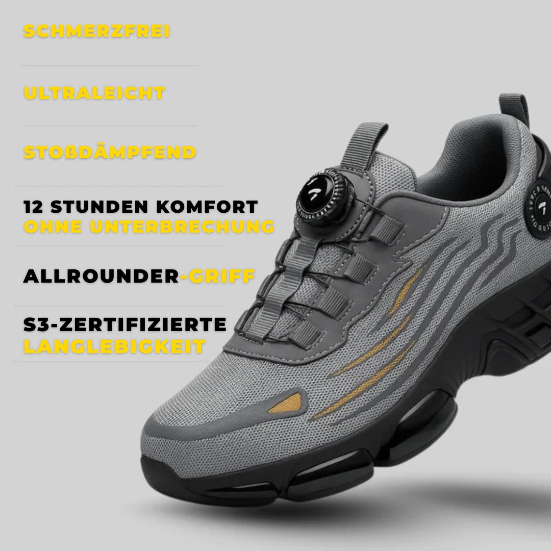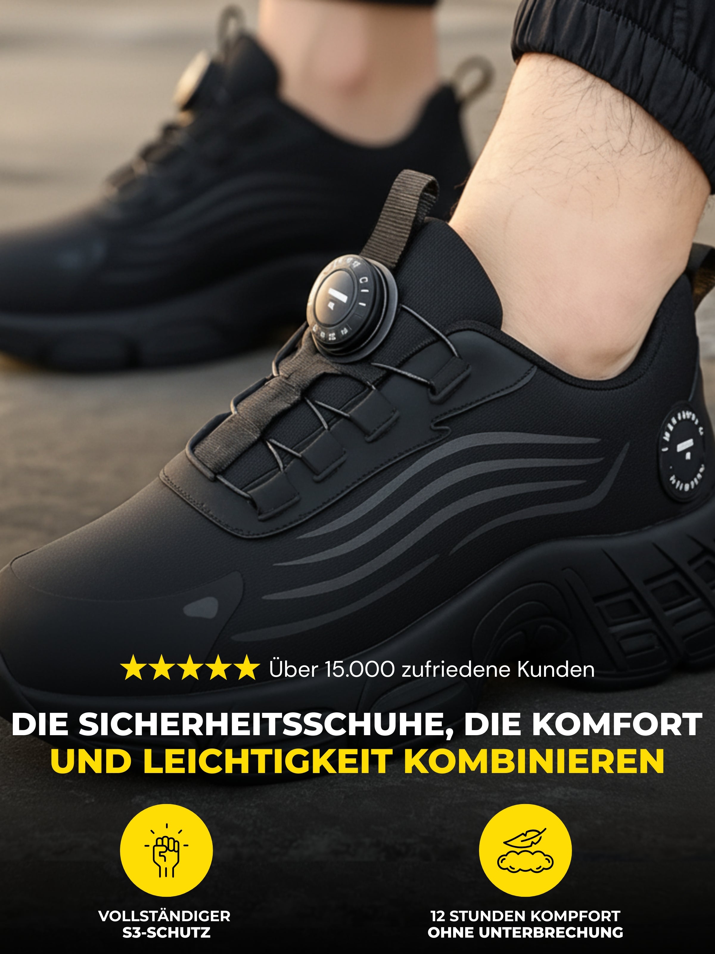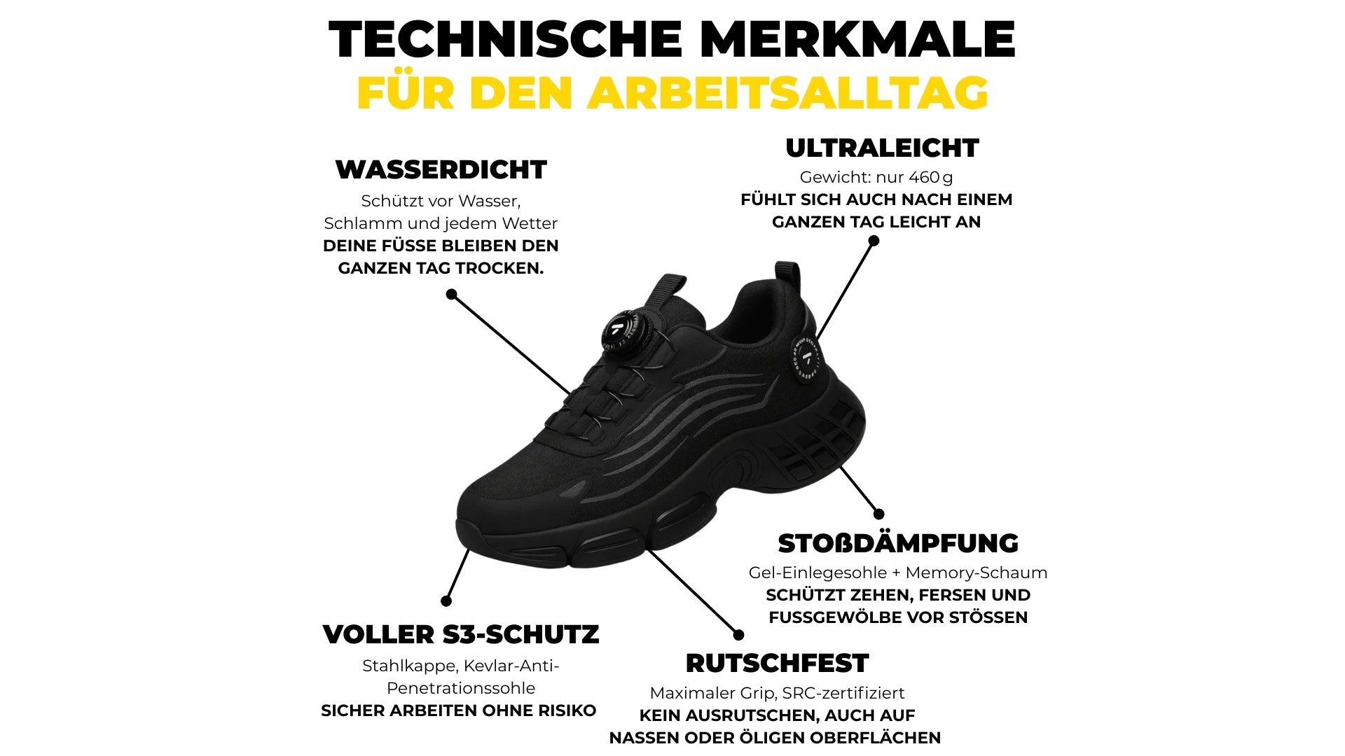 Anstelle schwerer, starrer Sicherheitsschuhe erhältst du ein stylisches Paar, das du auch außerhalb der Baustelle bequem tragen kannst.